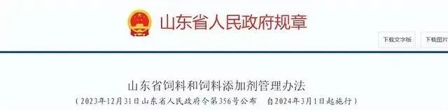 為加強對飼料和飼料添加劑的管理,提高產品質量,保護動物健康,保障動物產品和食品質量安全,新制定的《山東省飼料和飼料添加劑管理辦法》(點擊文末“閱讀原文”下載《辦法》)將自3月1日起施行。